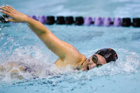 The women's 200 free relay team of freshmen Madie Sandberg, Hannah Dooley, Amanda Key and sophomore Bryn Lohrberg logged a time of 1:39.28 en route to a seventh-place finish.