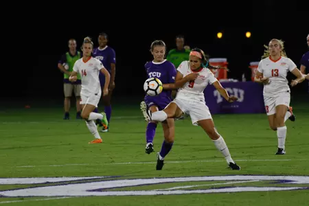 In the second half, TCU came out with a spark, earning an early corner kick. The feed eventually worked its way to the foot of McKenzie Oliver, but her shot from the top of the 18 sailed high.