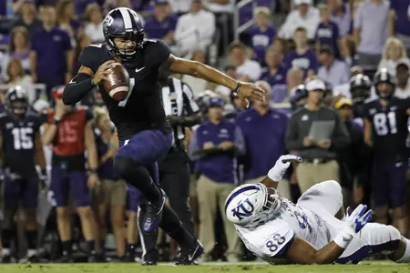Hill, the senior quarterback from Southlake, Texas, has led the Horned Frogs offense to victories this entire season. Last Saturday, in the win against Kansas, he matched his career high with five touchdown passes, and tied for second-most in a game in TCU history. The team captain also started off with a notable pass to Desmon White, giving TCU an opening-drive touchdown for the fourth time this season. Hill was 19-of-26 for 278 yards and had no interceptions.