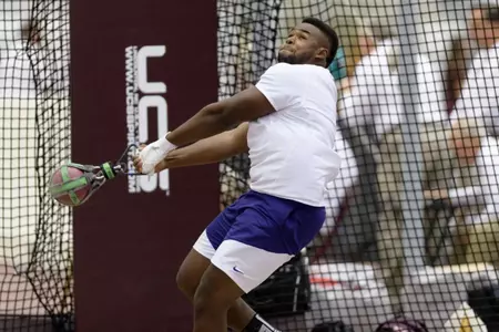 COLLEGE STATION, Texas -- The TCU track and field team opened the indoor season on Saturday at the Reveille Invitational hosted by Texas A&M. The men's weight throwers highlighted the day for the Horned Frogs, led by a school record throw by sophomore Isaiah Rogers.
